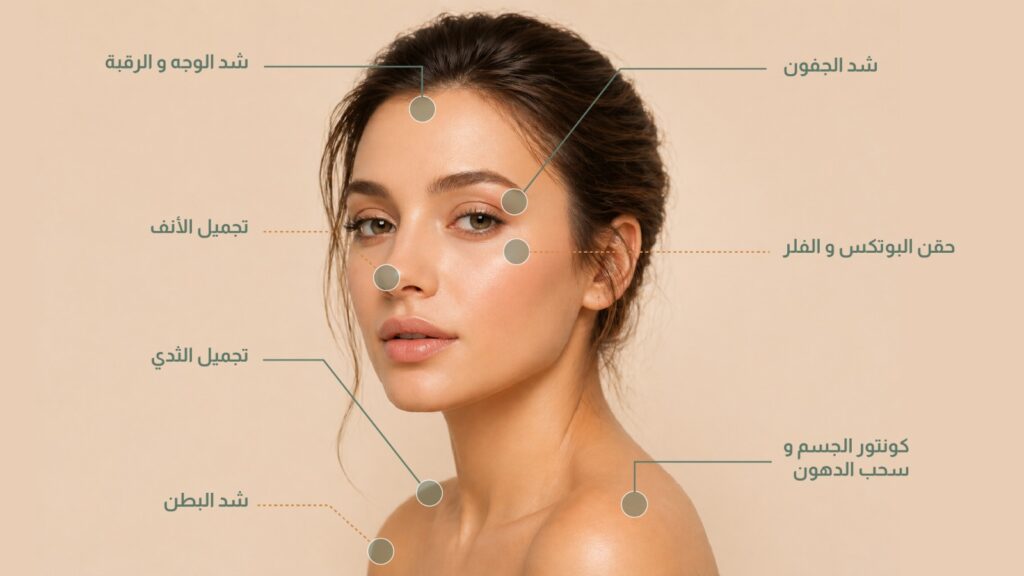 - الشد الجراحي: يُزيل الجلد الزائد ويشد الأنسجة العميقة للحصول على نتائج طويلة الأمد، لكنه يحتاج إلى فترة تعافٍ أطول.